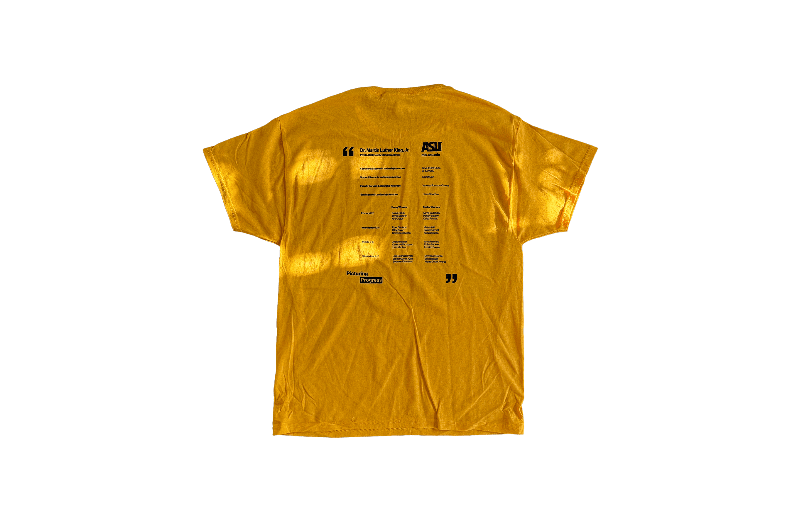 Tasked by Colleen Jennings-Roggensack, ASU Vice President for Cultural Affairs, and Executive Director of ASU Gammage, the third-year design students each come up with their own brand identity for the annual MLK Celebration at ASU. Each year, the committee hosts a competition for third-year graphic design students to honor Dr. King's legacy through a comprehensive visual strategy. Teams develop branding, print and digital collateral, budgets, and event timelines. Trysten worked in a team of six, and our proposal was selected as the sole finalist, earning top recognition from the committee. Our collateral consisted of bookmarks, stickers, t-shirts, and evite, a website, and digital ads. These designs will be visible for the 2026 celebration throughout all campuses and on the MLK website.